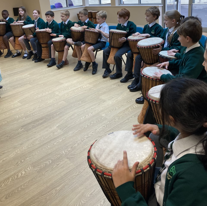 Some children, across the school, also participate in Rock Steady sessions, where they get to play instruments, or sing, as part of a band. Children in KS2 also visit Wellington Prep school where staff deliver a unit of work.